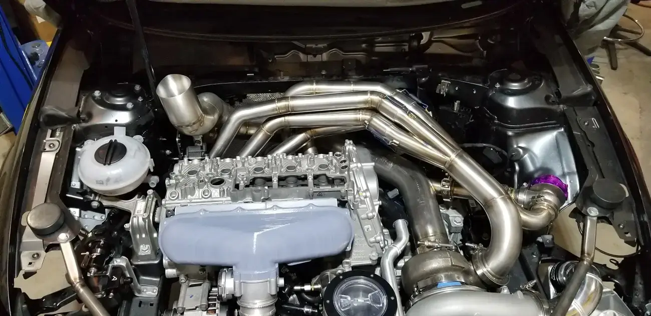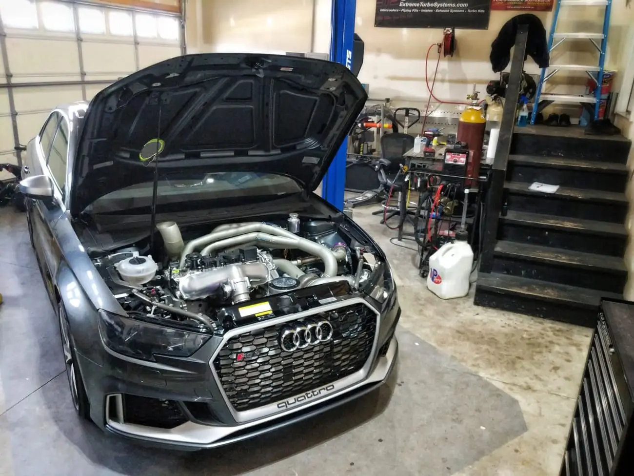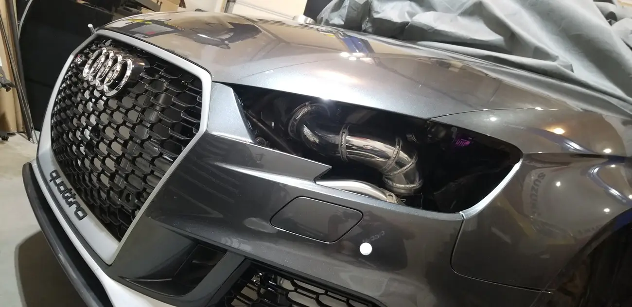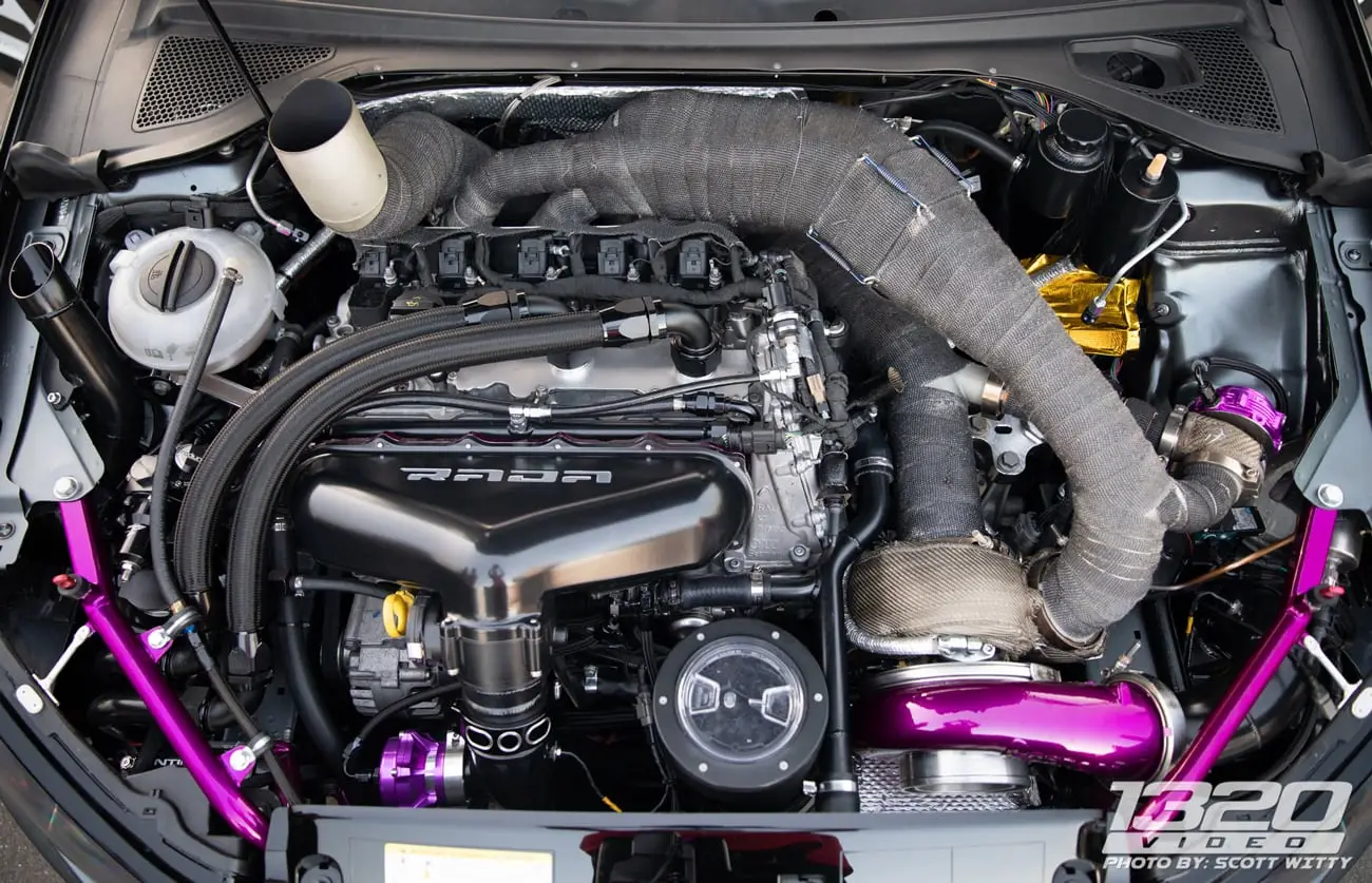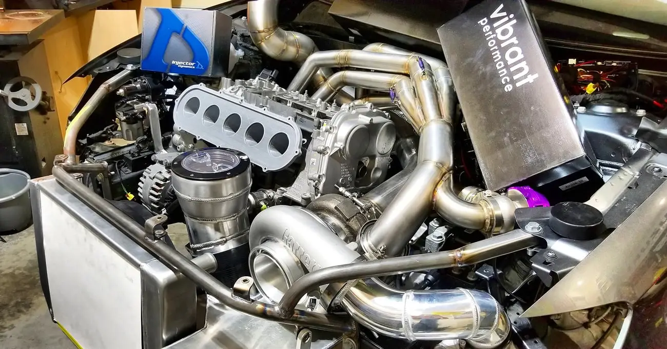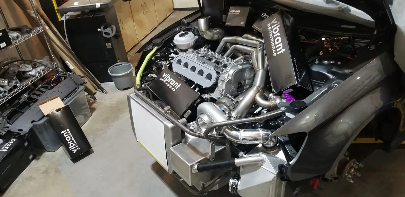 Every aspect of Kyle’s Audi RS3 was worked over – from a fully built motor, custom fabrication work on the turbo kit, air-water intercooler, custom chromoly roll cage, parachute mount, custom carbon/carbon drag brakes, built twin clutch transmission, mil-spec wiring harness and more.