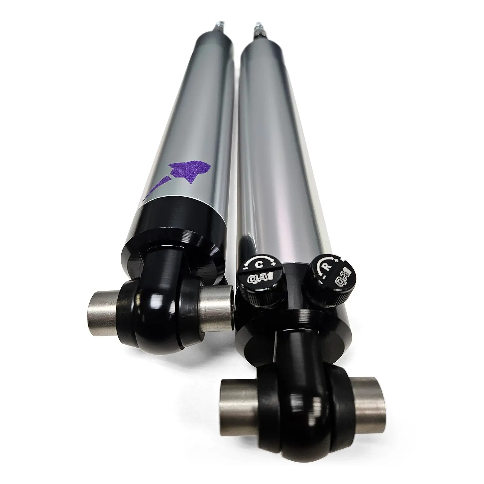 Designed and tested in house and also used in our customer’s “record setting” TT RS (8.0@175mph). These are intended to be a mid-level upgrade for anyone that wants more tunability out of their suspension on any surface. The OEM units are not designed for drag racing and do not offer any adjustability. And during launch or high power acceleration scenarios, they are at the end of their travel/stop limits. This leads to shorter life-span and loss of traction and performance. Starting with QA1 drag race components and adding some “Razzle Dazzle”, this is a budget-friendly part that packs a punch when it comes to dialing in your short-track.